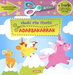 Ebaki eta itsatsi orrialde hauetan aurkituko dituzun siluetak, eta osatu adarbakarren mundu zoragarria. Gainera, soilik papera ebaki dezaketen artazi batzuk dakartza, haurrentzat egokiak.